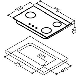 .挖孔尺寸㎜ 725*465(R85)